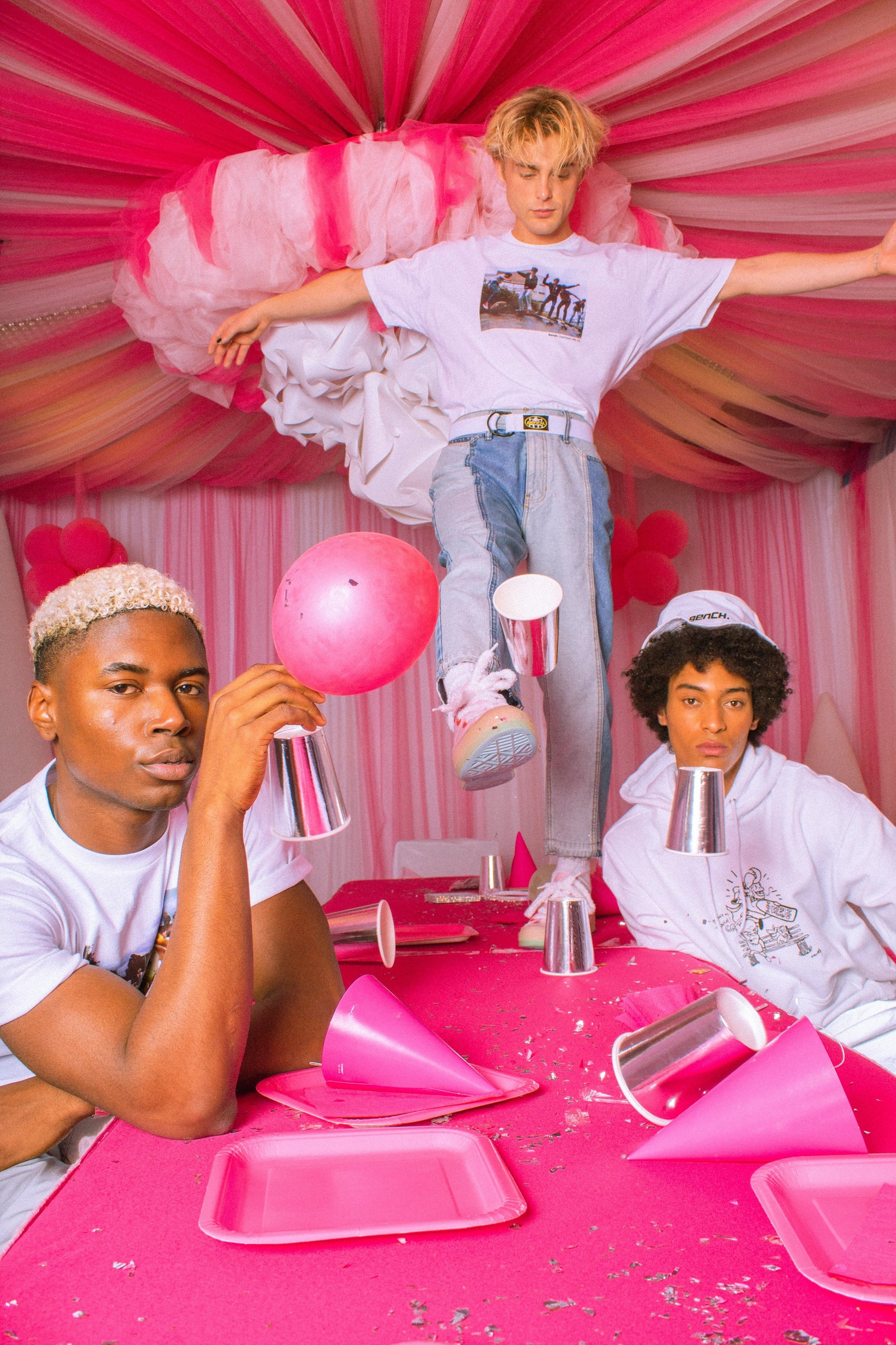 With the collaboration of talented artists, we designed pieces that serve as a tribute to our brand’s beginning. Artist, Tyler Spangler (@tylerspangler), created the “1989” logo with psychedelic patterns to reflect the 90s era rave scene. We also turned to local artist, Rafael Morales (@ghostantino), to illustrate the “skater grandpa” hoodie and Chloe Perl for the Bench explosion logo.