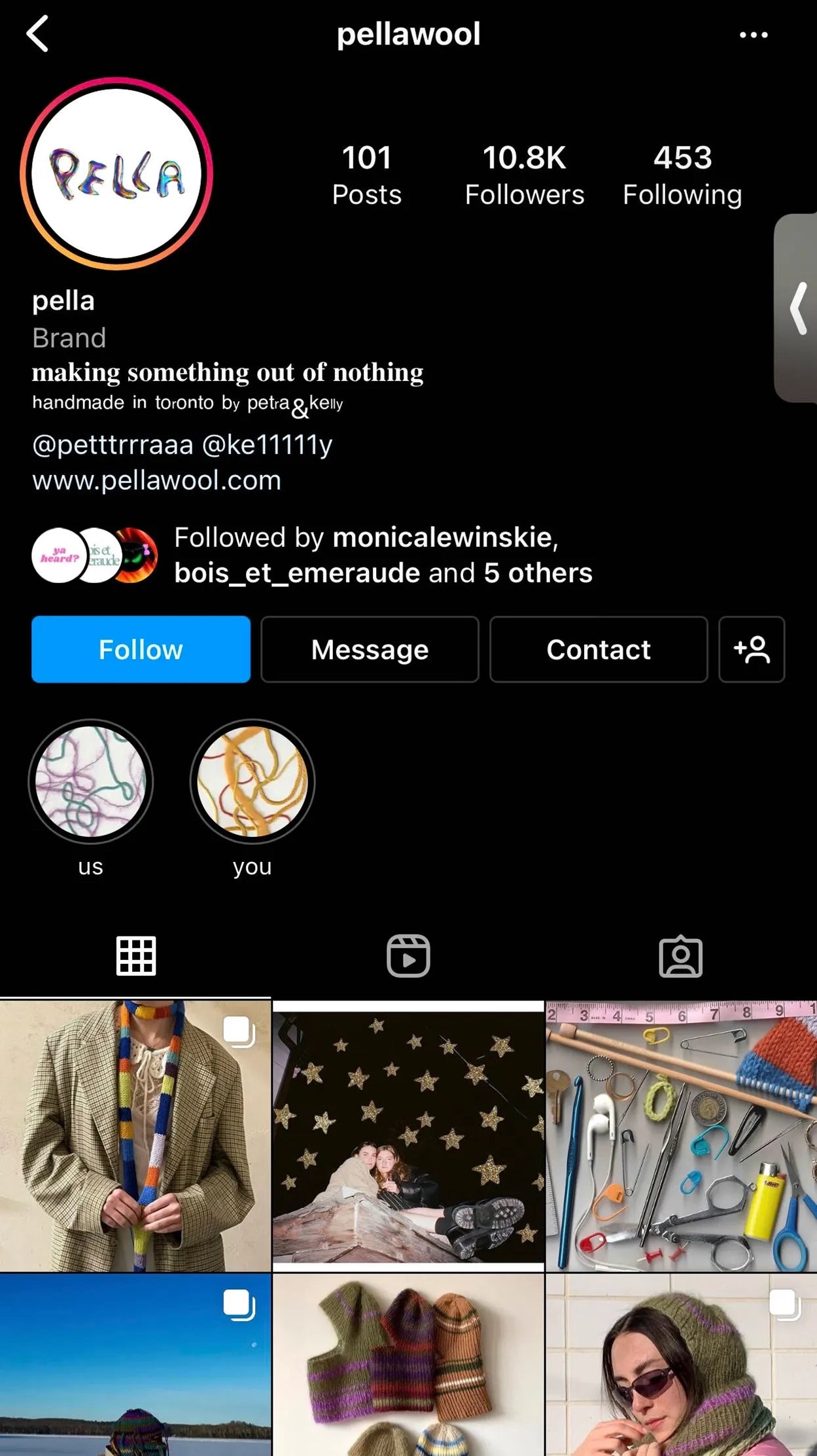 Petra: We know that we love knitting - so even if we didn't have a brand or have a business, we would still be knitting. It just wouldn’t be on a platform, but the fact that we were able to show it to people, sell it to people and meet other creatives in Toronto who are also knitting or also have small businesses is super special for us. We'll literally be in a park just knitting and then people will come up and be like “Oh you’re a knitter!” and then we'll just get into conversations because it's such an interesting niche activity that really brings people together.