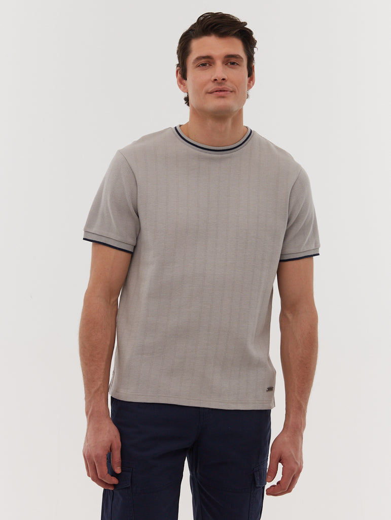 Le t-shirt Ernara Ringer Neck de Bench combiné(e) style moderne et confort au quotidien. fabriqué dans un tissu doux et résistant, il présente un motif texturé pour un aspect raffiné. Les finitions côtelées contrastantes au col et aux manches ajoutent une touche méticuleux, tandis qu'une petite étiquette métallique près de l'ourlet renforce son esthétique minimaliste.