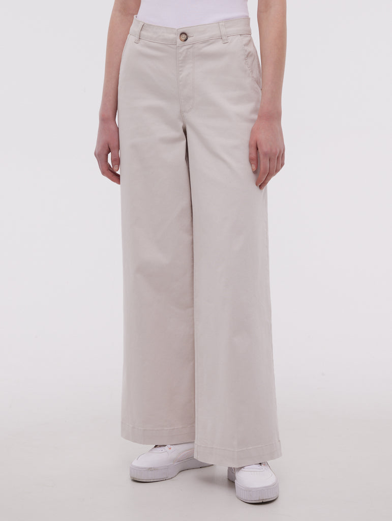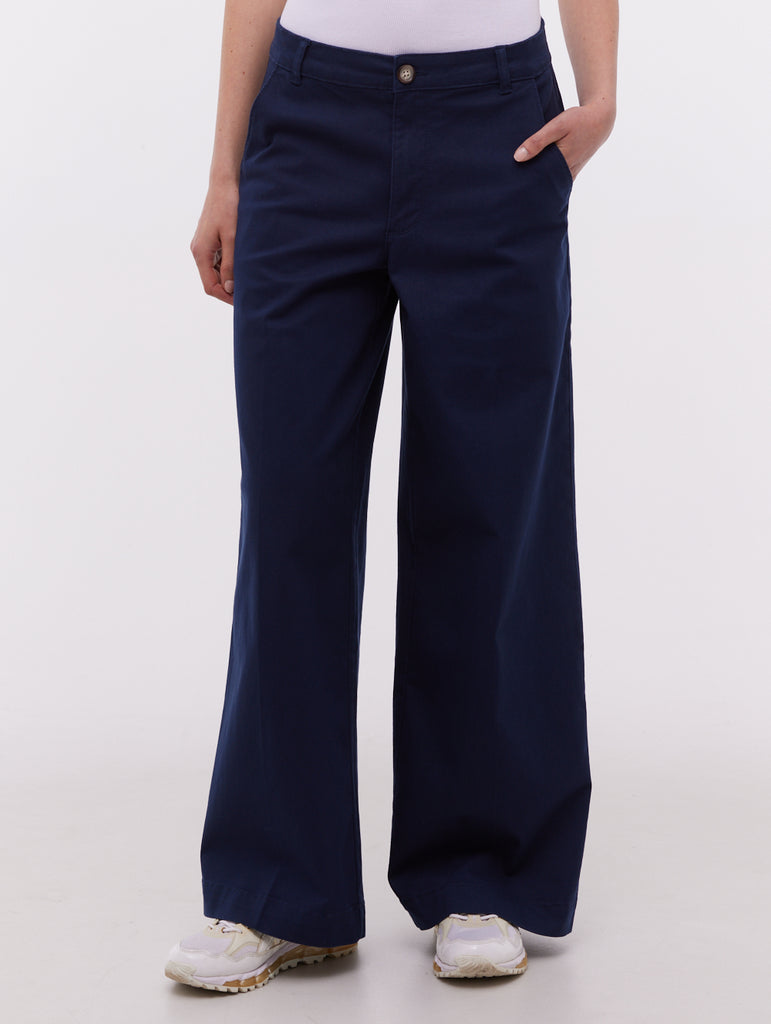 The Heera Wide Leg Pants by Bench feature a relaxed, contemporary fit with a breezy wide-leg silhouette. Made from soft stretch twill, they include a button closure, belt loops, slanted side pockets, and a welted back pocket. A subtle woven brand tab finishes the look, perfect for casual or polished styling.