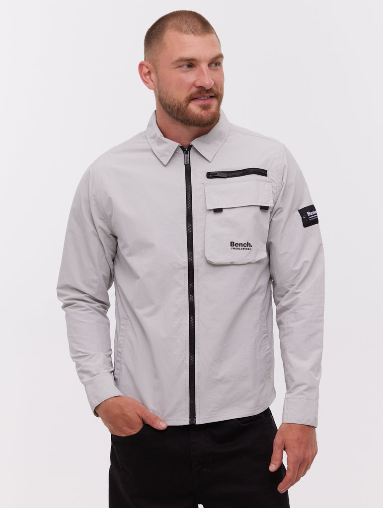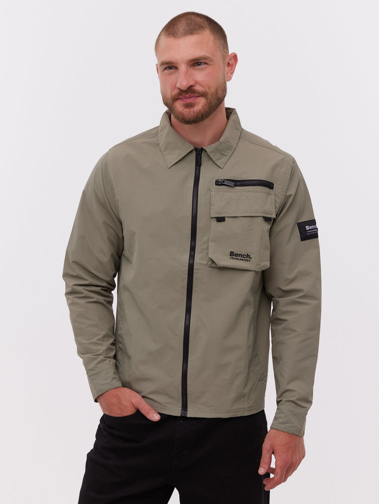The Aikido Zippered Shacket by Bench blends sleek utility with everyday versatility. Featuring a zip front, structured fit, and multiple secure chest pockets, it’s crafted from lightweight, durable fabric. Subtle branding and clean lines complete the look—ideal for layering through transitional weather or adding edge to casual outfits.