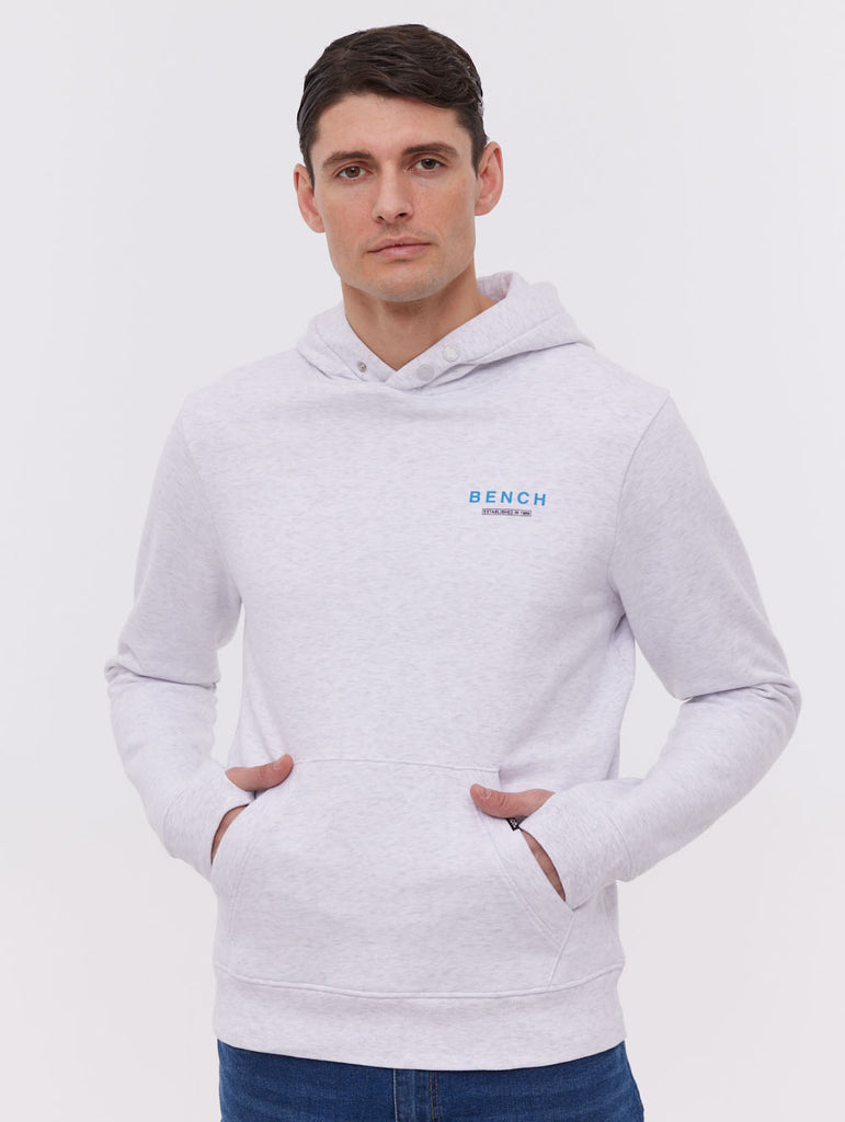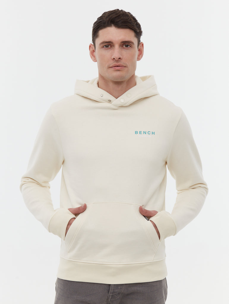 The Manti Back Graphic Hoodie by Bench merges modern minimalism with streetwear appeal. Crafted from soft, breathable fabric, it features a sleek front with a small logo and a large minimalistic back graphic. A snap-button hood, ribbed cuffs, and a kangaroo pocket enhance comfort and style, making it a versatile essential.