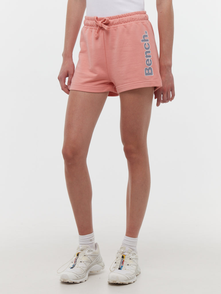 The Phoebe Hip Logo Jogger Shorts blend modern style with all-day comfort. Made from soft fleece fabric, they feature a high-rise elastic waistband with an adjustable drawstring for a perfect fit. The simple construction and bold vertical Bench logo ensure a sporty look, making them ideal for lounging or active days.