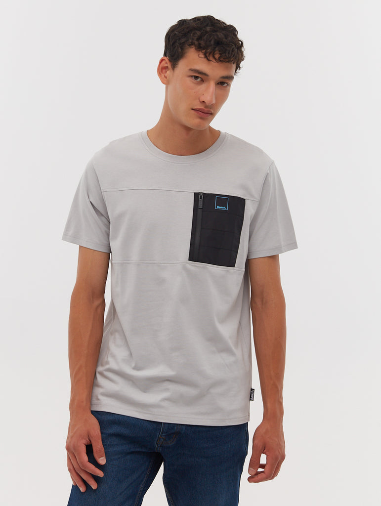 The Sandbach Chest Pocket T-Shirt by Bench blends modern fashion with practicality. Featuring a crew neck and short sleeves, it includes a polyester patch with a zippered pocket on the chest for storing essentials. A discreet woven tab adds uniqueness to its design, making it ideal for both casual outings and relaxed gatherings.